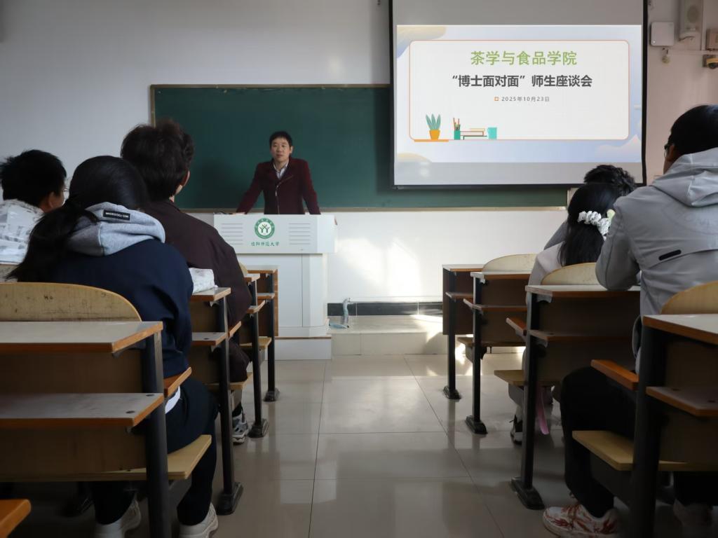 为帮助2025级新生顺利适应大学生活,明确专业发展方向,科学规划学业生涯,10月23日下午两点,我们茶学班于俊采楼407教室召开"博士面对面"师生座谈会。本次会议由周棋赢院长主持,2025级专职辅导员耑妍及茶学班全体学生参加。